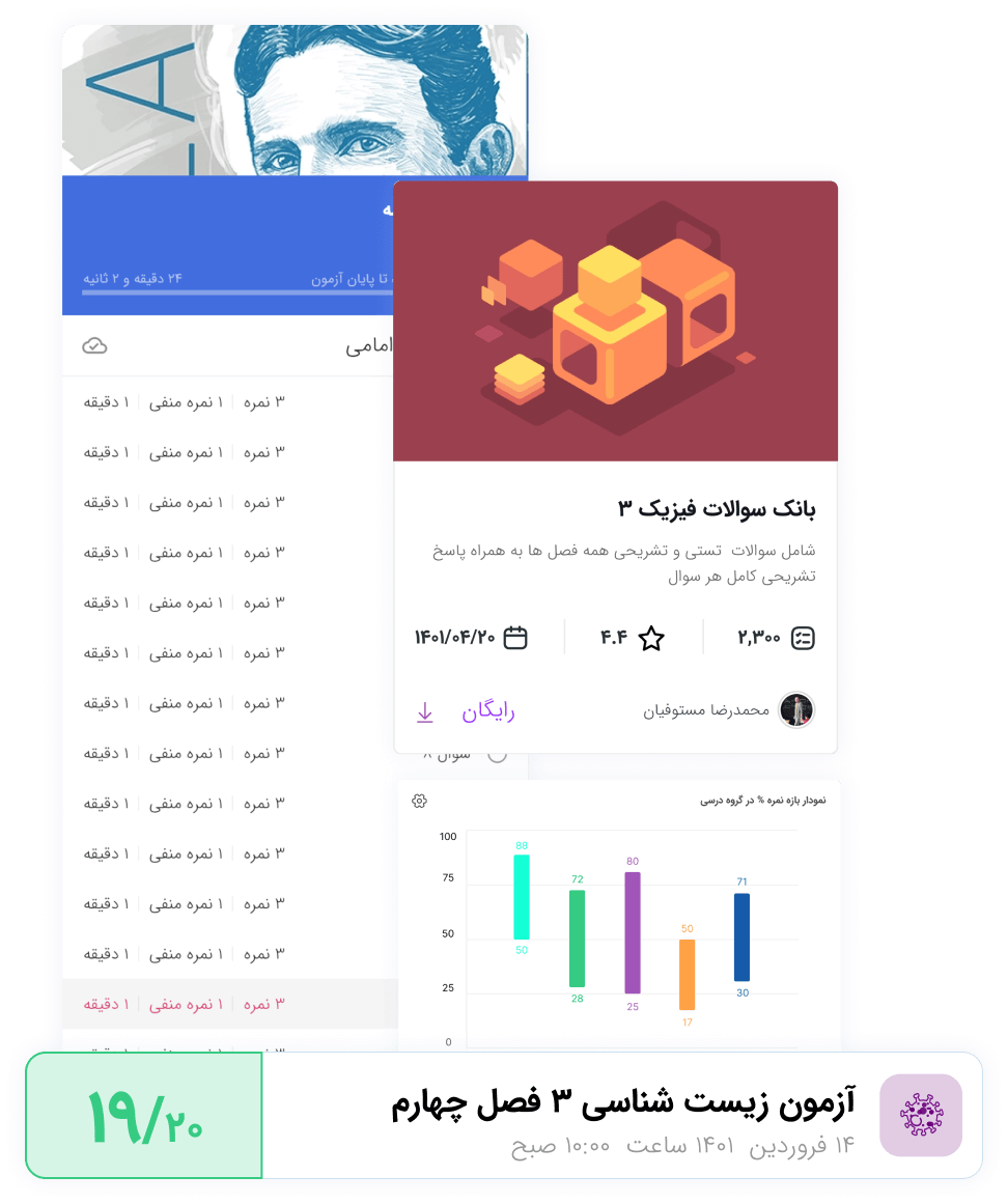 شما میتوانید آزمون هایی با برند اختصاصی خود طراحی کنید و آنها را با ظاهر دلخواه به صورت آنلاین یا چاپی برگزار کنید
